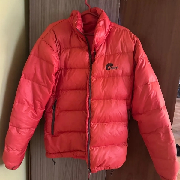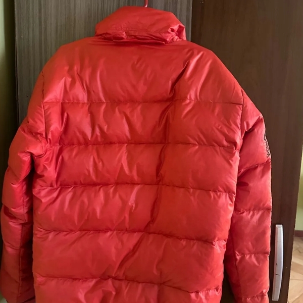 Casaca acolchonada color rojo, sin detalles, casí nueva.